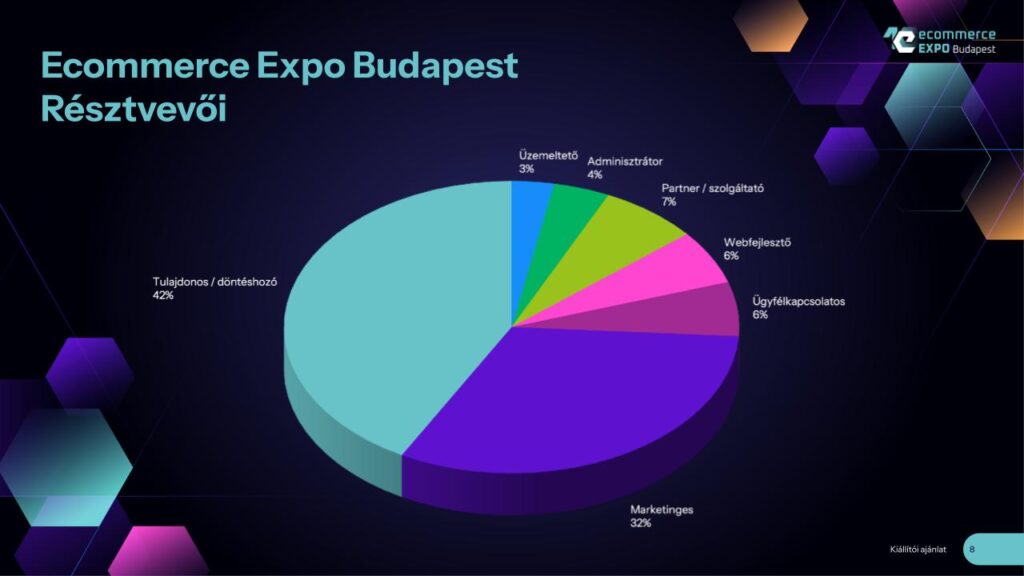Az Ecommerce Expo résztvevői webáruházuház tulajdonosok, online értékesítést segítő marketingesek, webáruház indítása előtt álló vállalkozók, közepes és nagy webáruházban dolgozók.