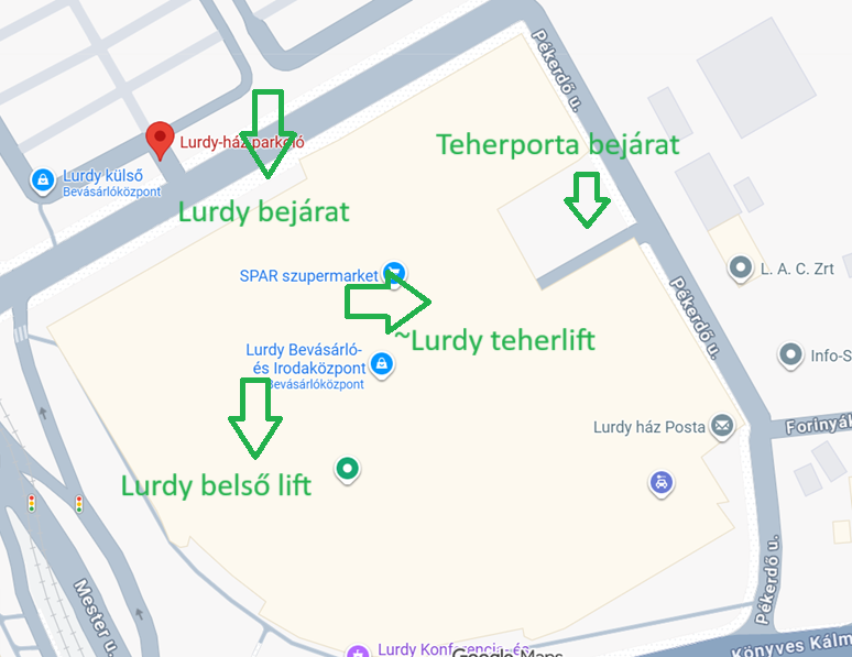Teherlift: egészen 21:00-ig üzemel. A teherliftet a Pékerdő utca felől tudjátok megközelíteni. A teherliftet csak is (kis)teherautóval tudjátok használni! Fontos, hogy a teherliftbe való bepakolás után álljatok át a rendes parkolóba!